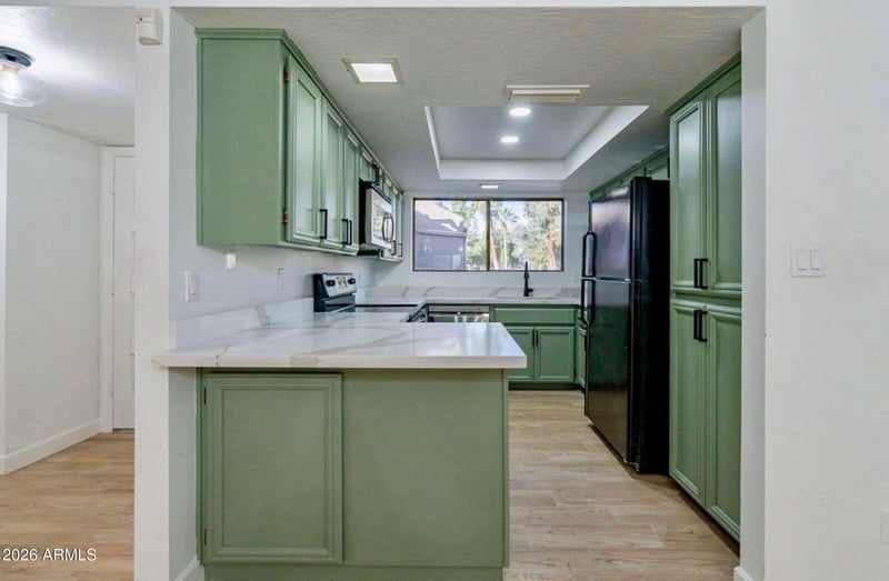 Listing details for 6525 Maryland Cir, Phoenix, AZ 85013 : Fully remodeled home, complete with new bathrooms, a gorgeous kitchen, new flooring throughout and lighting. The home features high-beamed-ceilings with lots of natural light. There is a wet bar in the dining area. The primary suite includes a large closet and soaking slipper tub in primary bath. There is a 2 car garage attached to this home, and lots of guest parking. Additionally, the home comes with access to community features that include a pool, a beautiful common area and pickle ball courts. Close to many trendy restaurants and just minutes from downtown. Very quiet and private gem. Easy to show.