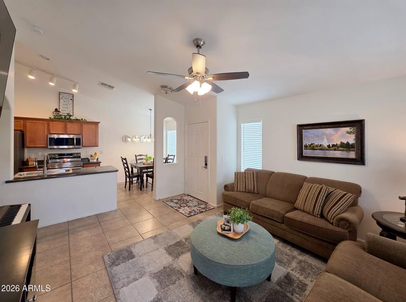Listing details for 660 Mesquite Tree Ln, San Tan Valley, AZ 85143 : NEW ROOF! CLOSE TO SHOPPING-4-Bedroom Home in Skyline Ranch - MOVE-IN READY! This beautifully maintained home in the desirable Skyline Ranch subdivision is perfectly designed to make the most of every square foot. The home features newer appliances, and a washer and dryer all included for added convenience. Major updates include a new roof installed in December 2025, and the backyard has been fully landscaped with low-maintenance turf, providing a clean, serene outdoor space perfect for relaxing or entertaining. Located close to shopping, Home Depot, and the new WinCo Foods, this home combines comfort with convenience. Community parks and a covered play area are just one block away, offering plenty of outdoor recreation for all ages.