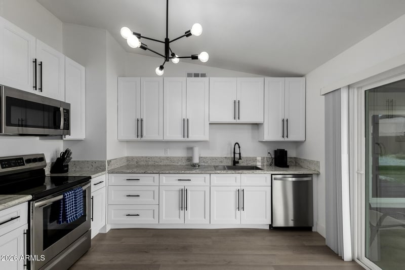 Listing details for 6620 Cholla St, Glendale, AZ 85304 : Move-in ready FULLY UPGRADED 3 bed, 2 bath home with no HOA in Glendale! Features a bright open floorplan, new luxury vinyl plank flooring, fresh interior/exterior paint, + dual pane windows & doors for energy efficiency. Stunning remodeled kitchen with white shaker cabinets, quartz countertops, stainless steel appliances, and modern lighting. Bathrooms fully upgraded with new vanities and fixtures. NEWER water heater, NEWER AC, and NEWER ROOF offer peace of mind. Resort-style backyard with custom PUTTING GREEN, paver patio, CORN HOLE area, and low-maintenance turf--perfect for entertaining or Airbnb income potential. RV gate, extended parking, and convenient access to shopping, dining, parks, and major freeways make this an ideal primary home or investment opportunity. This one is DIALED!