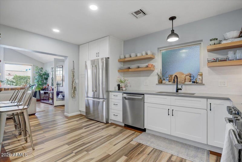 Listing details for 6624 2nd Ave, Phoenix, AZ 85013 : Beautifully updated 4 bedroom, 3 bathroom home in highly sought-after North Central Phoenix! This spacious, flexible floor plan features two primary suites. Tons of natural light which showcases the vaulted ceilings and a cozy fireplace in the family room creating a warm and inviting living space. The updated kitchen offers modern finishes, a mini bar/coffee station, and ample cabinetry seamlessly flowing into the main living areas. The primary and secondary bathrooms have all been tastefully renovated for a fresh, contemporary feel. Step outside to your private backyard oasis complete with a sparkling pool and tranquil water feature--perfect for entertaining or relaxation. Major system updates include a newer roof and air conditioning for added peace of mind. A 2-car attached garage and backyard storage shed. Ideally located near the Bridal Path, offering miles of scenic walking, jogging, and biking trails, with easy access to dining, shopping, and everything North Central Phoenix has to offer. This home combines comfort, functionality, and location--don't miss it!