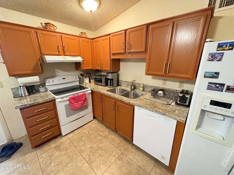 Listing details for 6711 Osborn Rd #46, Phoenix, AZ 85033 : Welcome to this charming 2 bed / 1 bath condo featuring tile flooring, window shutters, and ceiling fans throughout. The living room flows into a remodeled bathroom and a spacious primary bedroom. The kitchen offers granite countertops and beautiful cabinetry. A sliding door with built-in blinds opens to a private block-fenced backyard, perfect for relaxing. Fresh interior and exterior paint, along with an included washer and dryer, make this home move-in ready. Complete with two covered parking spaces and conveniently located near schools, shopping, and freeways.