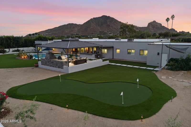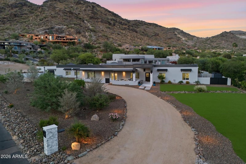 Listing details for 6737 60th St, Paradise Valley, AZ 85253 : Located in the most significant neighborhood of Paradise Valley! Move right in or buy at lot value! This totally rebuilt home with sweeping views of the north side of Camelback Mountain. This nearly 1.3-acre estate offers 5 bedrooms and 4.5 baths, plus game room! The private primary suite features a spa-like bath and is separated from a newer addition that includes a large flex room and two ensuite bedrooms--ideal for guests or multigenerational living. Entertain effortlessly in the roomy chef's kitchen and butler's pantry that open to a comfortable great room with an additional front seating area. Outdoors, enjoy an equipped kitchen, a dramatic gazebo with fireplace and pizza ovens, and ample space to add a casita, pickleball court, or extra garage. Close to everything that is PV