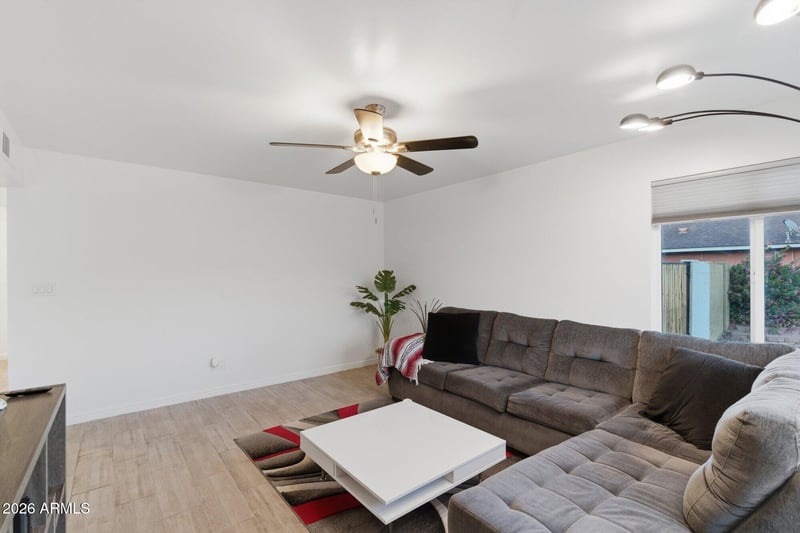 Listing details for 6802 Ocotilla Ln, Peoria, AZ 85345 : Beautifully updated 3 bedroom, 2 bath, 2 car attached garage home. Features tile flooring throughout, fresh and bright modern white kitchen. The open kitchen offers a large island, trendy countertops, built-in pantry, and recessed lighting. Both bathrooms were fully updated a few years ago with all new fixtures, hall bath includes a updated tub and the primary bath features ample size tiled shower. The third bedroom includes a walk-in closet, could be a great office space. Front and backyard has a drip irrigation system, RV gate, and a backyard patio--perfect for relaxing or entertaining.