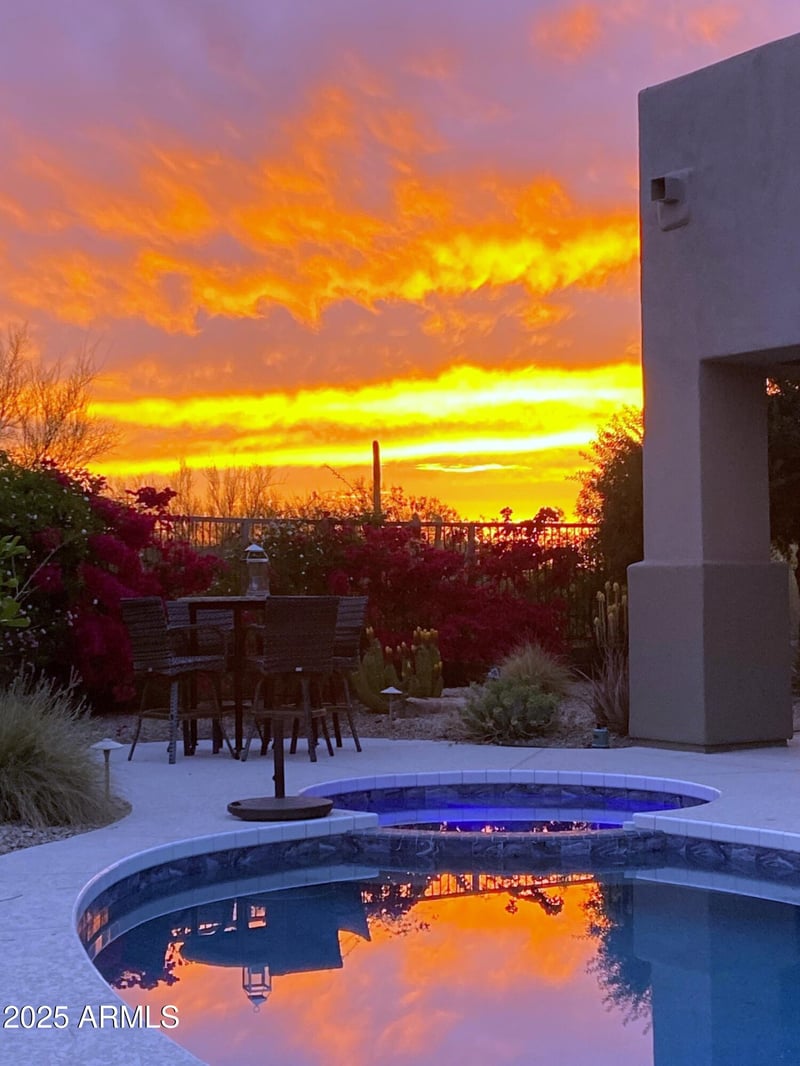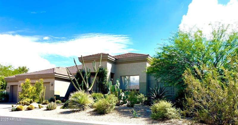 Listing details for 6867 Crimson Sky Trl, Scottsdale, AZ 85266 : A Rare Opportunity in Terravita! Resort style living in this 4 bedroom, 2.5 bath main residence. Bonus is a detached guest casita with a private entrance off the patio, includes a full kitchen, living area, bedroom & full bath. The main home is light and open with a spacious primary suite. Enjoy indoor/outdoor living with a covered patio, private heated pool & spa, lush desert landscaping, and outdoor entertaining areas - ideal for sunset cocktails or morning coffee. Nestled on a premium, oversized lot that sides to a natural desert preserve. Terravita has a guard-gated entrance & offers many amenities (including pool/spa, pickleball, golf course, clubhouse with dining & more). This home is move-in ready and perfect for year-round living or as a lock-and-leave retreat.