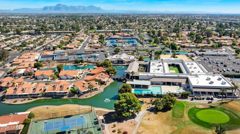 Listing details for 689 Leisure World --, Mesa, AZ 85206 : This is an incredible opportunity to own a turnkey, low maintenance Tennis Court Townhome overlooking a lake and Heron Lakes Hole #14. The HOA takes care of the exterior of the home including the roof. This 2 bedroom, 2 bathroom home has a vaulted ceiling in the living area. You have access to the deck from both the living room and primary bedroom. Your home is close to Rec. 1, the Pickleball Courts and main pool, with just a short walk across the bridge. The home even comes furnished and has all the linens and household items you will need. All this in the Premiere Active Adult Community of Leisure World with 36 holes of private golf, new tennis complex, pickle ball, swimming pools, library, state of the art fitness center, theater, arts and crafts, billiard room, and much more!!