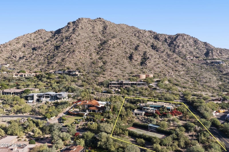 Listing details for 6900 Mummy Mountain Rd #29, Paradise Valley, AZ 85253 : Set on 1.61 acres at the base of Mummy Mountain, this Paradise Valley property offers a rare combination of privacy, scale, and iconic surroundings. City lights shimmer in the distance while Camelback Mountain commands striking views to the south. An existing home with a dramatic view deck and private tennis court sits on the lot, offering immediate character and long-term vision. Whether thoughtfully reimagined or replaced with a custom build-to-suit estate, the setting supports something truly special. Tucked within a quiet, secluded neighborhood just moments from Paradise Valley Country Club, this is an exceptional canvas for a truly bespoke retreat.