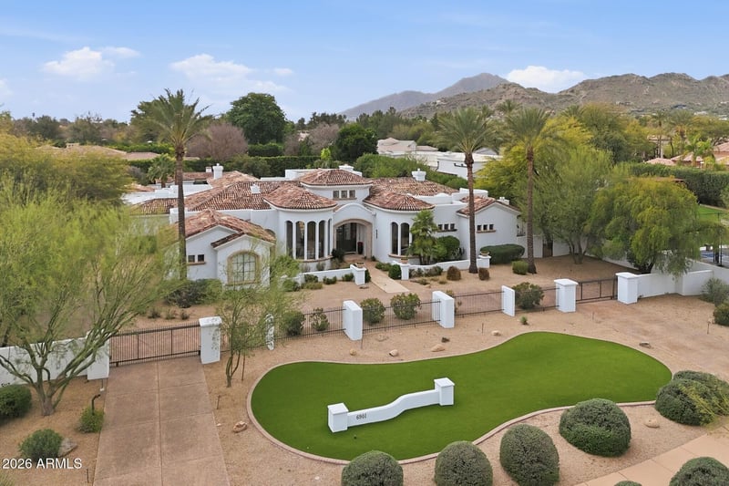 Listing details for 6901 Northern Ave, Paradise Valley, AZ 85253 : Welcome to a timeless estate in Paradise Valley, perfectly positioned for privacy, serenity, and effortless elegance. Set on just over an acre, the sense of serenity begins long before you reach the front door. Two private gates open to a circular drive framed by lush, manicured landscaping, guiding you toward a grand entry that hints at the sophistication within.