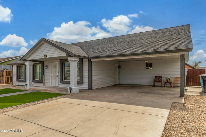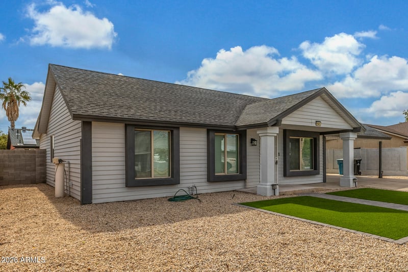 Listing details for 6945 Merrell St, Phoenix, AZ 85033 : Fully remodeled and move-in ready, this beautifully updated home sits on a quiet cul-de-sac. Designed for modern living, it features a covered carport and low maintenance low artificial turf on effortless curb appeal. Inside, you'll love the completely renovated interior showcasing vaulted ceilings, recessed lighting, a fresh neutral palette, and stylish wood-look flooring throughout. The spacious living and the fully upgraded kitchen shines with quartz countertops, white shaker cabinetry, stainless steel appliances, modern pendant lighting, and a center island perfect for prep and gathering. The primary suite includes a private en-suite bath, completing this thoughtfully remodeled home. Conveniently located near shopping, dining, and major roadways. This home is must-see!