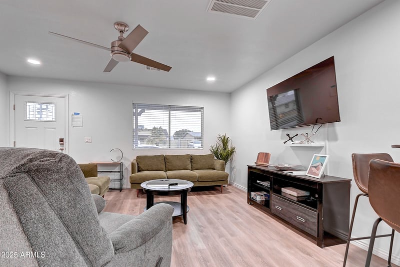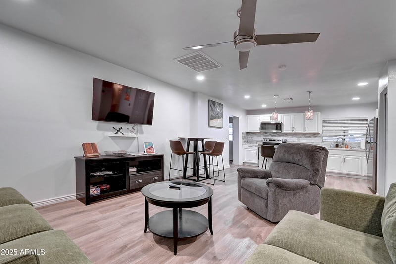 Listing details for 6959 Solano Dr, Glendale, AZ 85303 : Step into instant cash flow with this fully operational, fully furnished vacation rental in the heart of Glendale! Just minutes from State Farm Stadium and Westgate Entertainment District, this updated home is an investor's dream. The private backyard features a sparkling heated pool for year-round enjoyment, a putting green, and a fire pit. Inside, you'll find a modern, open-concept floor plan with upgraded flooring, a updated kitchen with stainless steel appliances, and stylish furnishings that all convey with the sale.