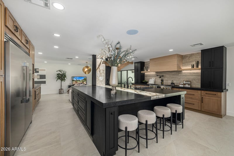 Listing details for 7001 Pershing Ave, Scottsdale, AZ 85254 : Perfectly positioned in the heart of Scottsdale's coveted 85254 corridor, just minutes from Kierland Commons and surrounded by the area's finest shopping, dining, golf, and top-rated schools, this fully reimagined modern estate delivers an exceptional lifestyle on a rare .55-acre lot with no HOA. Completely remodeled and reframed to create an entirely new, highly functional layout, this five-bedroom, four-bathroom residence blends thoughtful design with elevated finishes and designer details at every turn. The interior shines with all-new lighting, featuring an abundance of recessed can lights that create a bright, airy ambiance, beautifully complemented by gorgeous, high-end chandeliers that add warmth, drama, and a refined sense of luxury throughout the home. Built-in speakers throughout ... the entire house and extending into the backyard allow you to enjoy seamless music and entertainment indoors and out, creating the perfect atmosphere for both everyday living and unforgettable gatherings.