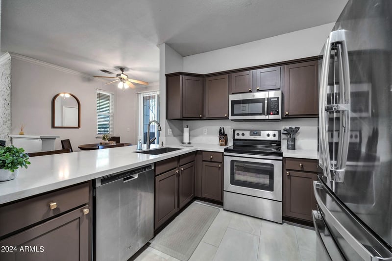 Listing details for 7009 Acoma Dr #1004, Scottsdale, AZ 85254 : Fabulous location w/3 bedrooms & a garage!!! Step into this beautifully remodeled first-floor condo, a rare gem complete with its own garage. Freshly installed flooring and a vibrant coat of paint welcome you into a space reimagined for comfort and style. The kitchen shines with refinished cabinets and elegant quartz countertops, while the bathrooms have been completely renovated to offer a modern retreat. Brand new windows not only brighten each room but also improve energy efficiency. Residents enjoy access to excellent amenities including a pool, spa, and fitness center, enhancing the living experience. Perfectly located, this condo is just a couple minutes away from premier shopping and dining options, offering the ideal blend of convenience and luxury. *Also available furnished
