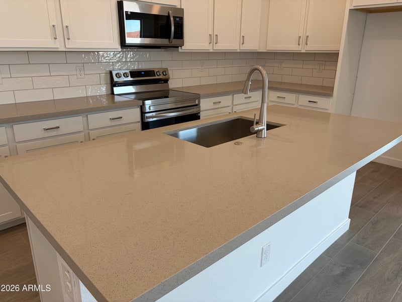 Listing details for 7048 Drygulch Rd, San Tan Valley, AZ 85143 : New Home*** Located in San Tan Valley. Gorgeous Open Plan with 4-bedroom, 2.5 bath, 2 car garage with workspace, 8′ garage door, 10ft ceilings and 8ft interior doors. Designer finishes include: Kitchen comes with White cabinets w hardware, tile back-splash, gray quartz countertops in kitchen and bathrooms, wood look Tile floors! This home also includes foam insulation, garage door opener, rain gutters, plus front yard desert landscape. Community Features: Community pool (est. completion Summer 2026), dog park, multiple play areas with corn hole, ramadas and BBQ grill. Come experience all that Wildera has to offer!
