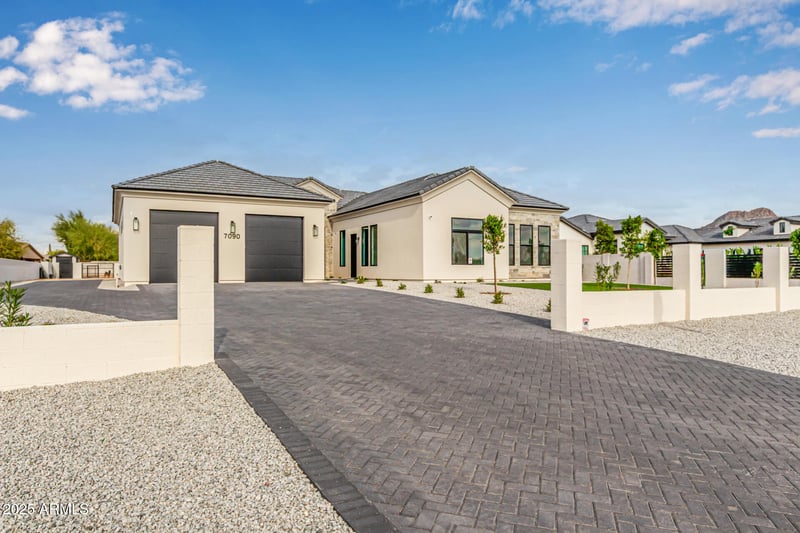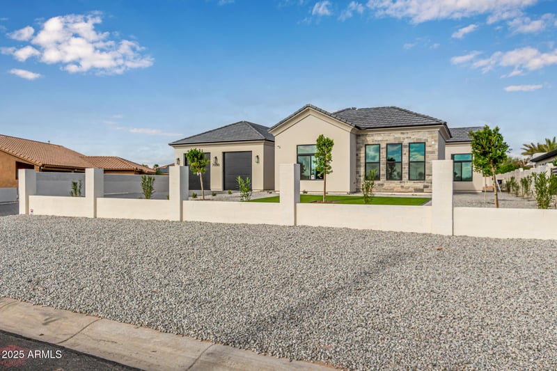 Listing details for 7090 Celestine Dr, Peoria, AZ 85383 : STUNNING New Custom Home in north Peoria! Gorgeous curb appeal, paver driveway & walkway and low maintenance front yard landscaping. Fall in love with an exquisite interior showcasing engineered hardwood flooring, dazzling light fixtures, 12 ft ceilings & multi-sliders merging the indoor with the outdoor living. Enjoy cozy nights at home by the delightful fireplace! Gourmet kitchen features stylish quartz counters & backsplash, large island, pot filler and Cafe stainless steel appliances including induction cooktop, double wall oven & built-in refrigerator! The serene master retreat features a lavish ensuite equipped with dual sinks, a superb soaking tub, a walk-in shower and large walk-in closet. The other three bedrooms all have en suite bathrooms and walk-in closets! This dream home also features a 617 sqft attached Casita featuring its own living room, bedroom, bathroom and kitchenette. Casita has access through main house as well as its own separate entrance. Garage is oversized 3-car tandem garage with extended height doors and epoxy flooring. Discover the amazing backyard offering a large covered patio, travertine pavers, a self-cleaning saltwater system swimming pool with a spa and pool bathroom! Premium oversized 29,996 sqft lot has north south exposure and backs large common area with mountain views! No HOA. Don't let this gem pass you by!!