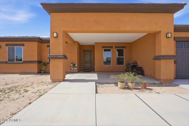 Listing details for 7124 257th Dr, Buckeye, AZ 85326 : Motivated seller--bring your offers! Stunning custom home on a full acre with horse privileges and irrigation rights, offering the perfect blend of space, privacy, and functionality. Step through the solid knotty alder front door into a bright open floor plan with durable tile flooring throughout. The gourmet kitchen is designed for both everyday living and entertaining, featuring quartz countertops, an oversized island with pull-out shelving, pendant lighting, double ovens, and a custom matching exhaust hood.