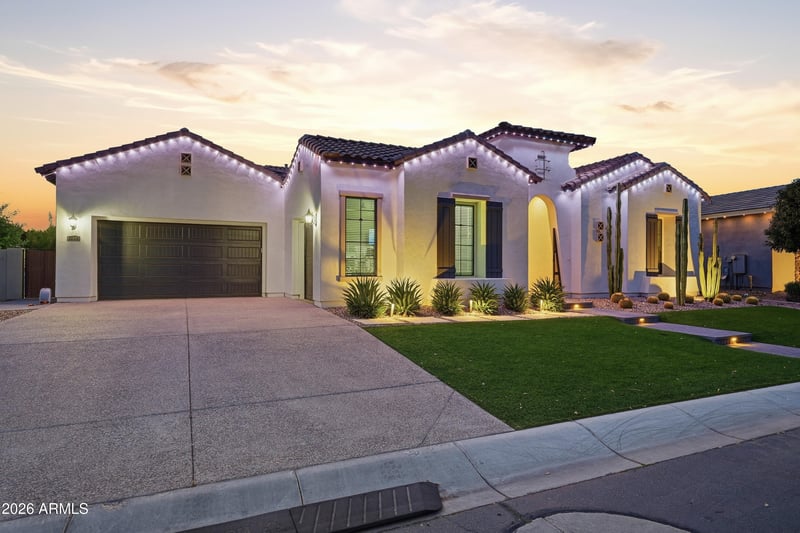 Listing details for 7126 Portland Ave, Gilbert, AZ 85298 : This stunning home in the highly sought-after Calliandra community makes an unforgettable first impression! The charming front courtyard welcomes you w/ a custom fountain as its centerpiece, creating a serene & inviting space w/ plenty of room to relax, entertain, or simply unwind before you even step inside. Through the custom glass arched front door, you'll discover a thoughtfully upgraded interior spanning nearly 3,900 sqft on an oversized ~0.31 acre lot. Offering 4 beds & 3.5 baths, the floorplan is as versatile as it is well-designed. Multiple living spaces include a dedicated den, a separate office/flex room w/ French doors & a split bedroom design. Two secondary bedrooms are connected by a Jack & Jill bath, while an additional bedroom features its own ensuite, perfect for guests At the heart of the home, the chef's kitchen opens seamlessly to the main living area & is designed to impress w/ a super-sized quartz island, built-in refrigerator, farmhouse sink, pot filler, roll-out cabinetry, glass cabinet accents & tile backsplash w/ integrated LED lighting. The dining nook is bathed in natural light w/ oversized windows & huge slider doors framing stunning backyard views. The great room is anchored by custom built-ins & a gas fireplace, creating a warm yet elevated space for gathering. The primary suite is a world of its own, a true private retreat w/ custom designer cabinetry, his & hers vanities & an oversized soaking tub. The massive walk-in closet is outfitted w/ custom built drawers, shelving & a dedicated island. The suite connects directly to the laundry room, fully equipped w/ a sink, ample upper & lower cabinet storage & an additional refrigerator. Step outside into your own private resort. The backyard is an entertainer's dream w/ a travertine-tiled patio, custom mini pebble pool w/ a large baja step & water feature, hot tub w/ gazebo, built-in BBQ, firepit, sports court & inground trampoline, all enhanced by phone controlled LED lighting. W/ no homes to be built behind the property, you'll enjoy ultimate privacy & unobstructed views for years to come. Completing the home is a split garage w/ added storage cabinets, a 3rd bay currently set up as a private gym, mud room & home alarm system. 3 of 4 bedrooms feature custom walk-in closets w/ built-in shelving & thoughtful touches like blackout window capabilities, remote-controlled window coverings, solar screens on the back patio & programmable thermostats make this home as functional as it is beautiful. The home also features permanent exterior lighting! Perfect for holidays & year-round curb appeal. Every detail has been considered; this one truly has it all!