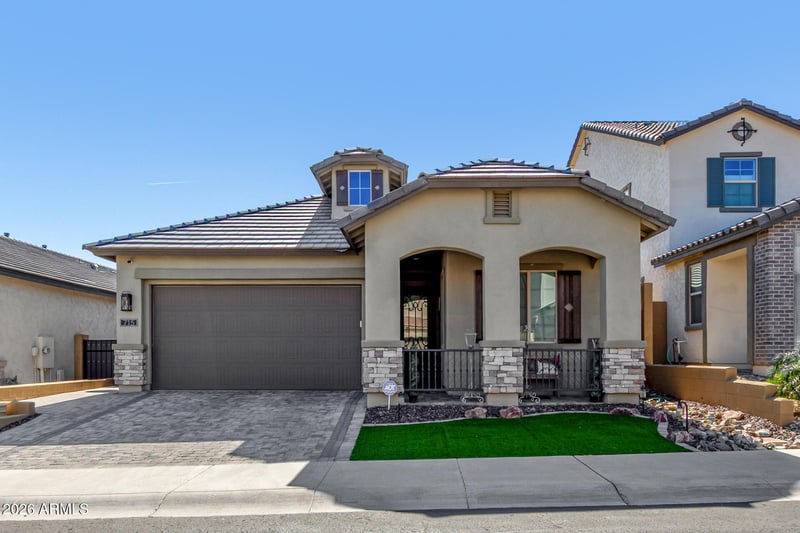 Listing details for 715 Silver Fox Way, Phoenix, AZ 85048 : Welcome to this beautiful home in the gated Palma Brisa! A 2-car garage & a delightful landscape w/artificial turf are just the beginning. Charming curb appeal with stone accent details, paver driveway, & a cozy front porch. The fabulous interior features tons of natural light, designer paint, tall ceilings, and soft carpet & tile flooring t/out. You'll love the seamlessly flowing open layout! The impressive kitchen boasts SS appliances, granite counters, a pantry, recessed lighting, white shaker cabinetry w/crown molding, and an island w/breakfast bar. Enter the main bedroom to find an ensuite with dual vanities, a soaking tub, & a walk-in closet. Enjoy the fantastic backyard, showcasing a covered patio, well-laid tiles, & a synthetic lawn. Just WOW!