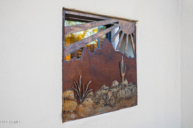 Listing details for 717 Royal Palm Rd, Phoenix, AZ 85020 : Completely reimagined by an award-winning designer using thoughtfully curated materials and distinctive architectural details, every inch of this home is stunning. Access your private retreat through the gated courtyard and beautifully crafted entry door. Inside, you will find a spacious interior rich with designer finishes, cherry wood flooring, and custom upgrades throughout. The front room features built-in cabinetry and opens seamlessly to an expanded living area anchored by a contemporary gas fireplace and a wall of windows overlooking the backyard. The gourmet kitchen is both beautiful and functional, equipped with double ovens, a pantry, appliance garage, large island and gorgeous European cherry cabinets with mahogany burl wood inlays. The primary suite is a true sanctuary, complete with a generous walk-in closet and French doors leading to a private covered patio. The award-recognized bathroom showcases an exceptional wet-room design with a soaking tub, separate shower, dual sinks, and remarkable craftsmanship. One of the four bedrooms has been transformed into an expansive secondary closet, ideal for a substantial wardrobe. Equally impressive, the outdoor living space has also received industry recognition. Mature landscaping, privacy screens, and expansive covered patios create a serene setting enhanced by a dramatic lava-rock gas fire pit, a custom metal art screen, and hand-carved stone art imported from Bali. This exceptional home is perfectly suited for the discerning buyer seeking refined luxury in the heart of North Central Phoenix. Please refer to the Custom Features List in the Documents tab for a complete overview of upgrades.