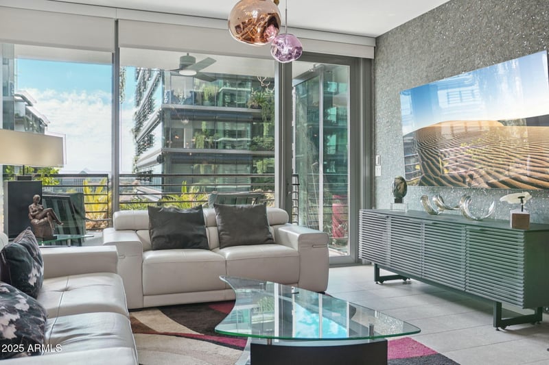 Listing details for 7180 Kierland Blvd #701, Scottsdale, AZ 85254 : Welcome to luxury living at its finest in the highly desirable Optima Kierland, where style, comfort, and breathtaking views of Lookout Mountain and Camelback Mountain converge. This beautifully updated 7th-floor condo offers 2 bedrooms, 2 bathrooms, and 1,386 square feet of sophisticated space, with over $80K in recent renovations. Step into a modern masterpiece featuring floor-to-ceiling windows that frame unobstructed sunset views and capture Paradise Valley, The spacious open floor plan is enhanced by extra-high ceilings and designer lighting throughout. Enjoy a chef's dream kitchen complete with Bosch stainless steel appliances, and a stunning quartz waterfall island. Both bedrooms feature luxury vinyl flooring, while the primary suite boasts a spa-inspired bathroom. Storage is plentiful with a large laundry room outfitted with custom cabinetry, and both bedrooms include classy, upgraded closets. This unit comes with two reserved parking spots, a dedicated EV charger, and private patio. The monthly HOA of $868 includes internet, water, and access to some of the finest amenities in Scottsdale  including a rooftop pool, hot tub, cold plunge, sauna, steam room, outdoor kitchen and bar, state-of-the-art gym, and indoor basketball and pickleball courts. Located just steps away from Kierland Commons and Scottsdale Quarter, this unit offers walkable access to world-class shopping, fine dining, and vibrant nightlife. Don't miss your chance to own a piece of paradise in one of Scottsdale's most prestigious communities. This is more than a home  it's a lifestyle.
