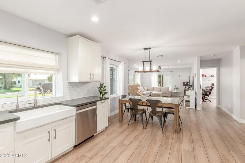 Listing details for 728 State Ave, Phoenix, AZ 85020 : Beautifully remodeled and thoughtfully expanded 4-bedroom home in the heart of Phoenix's desirable 85020 area, completely taken down to the studs with no detail overlooked. This home offers true peace of mind with brand-new electrical and plumbing systems throughout, including all new sewer lines, along with new drywall, insulation, HVAC system with new ductwork, dual-pane windows, roof, flooring, and water heater. The open-concept layout is bright, modern, and ideal for entertaining, enhanced by LED lighting throughout. The designer kitchen features white shaker cabinetry, quartz countertops, a classic subway tile backsplash, farmhouse sink, and premium LG and Siemens appliances.