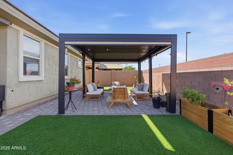 Listing details for 7296 Quinn Ave, Gilbert, AZ 85298 : Welcome to this beautiful home in the highly sought-after Adora Trails community of Gilbert. This functional floor plan features 4 bedrooms, 3 bathrooms, and a separate den. The center of the home is a spacious kitchen with granite countertops that opens directly to the family room, making it a great space for gathering. The primary suite includes a bathroom with a large walk-in shower. Outside, the backyard is designed for low-maintenance enjoyment with artificial turf and a shaded pergola. With no neighbors behind the home. Enjoy all the amenities Adora Trails has to offer, including a community pool, clubhouse, and walking trails. This well-maintained home is move-in ready and perfectly situated.