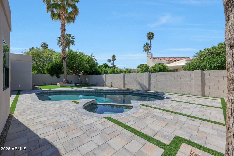 Listing details for 7318 Las Palmaritas Dr, Scottsdale, AZ 85258 : Professional pictures coming 2/10. Home can be purchased as a land-lease property for $1,250,000 and lot can be purchased for an additional $260,000. Completely rebuilt and transformed in 2024 down to the studs. (FULLY PERMITTED & INSPECTED) all underground & above ground plumbing replaced in 2024 / windows & doors (HVAC) and roof were replaced in 2024. 3 bedrooms and 2.5 baths with an oversized office. Separate laundry room, high end appliances, outdoor shower, heated pool and jacuzzi. Almost every inch of electrical wire was replaced in 2024. Artificial turf, and a recent $40,000 front landscaping and lighting project was completed in 2025. Must see! Best of the best.