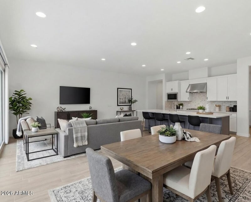 Listing details for 7336 Casitas Del Rio Dr, Scottsdale, AZ 85255 : Situated within the exclusive gated enclave of Silverstone, this modern North Scottsdale residence offers a sophisticated living experience defined by clean lines and premium finishes. The main level centers on an open-concept great room,dining area, and kitchen that flow effortlessly to a private patio,featuring direct gate access to the lush community greenbelt.The interior is anchored by a highly functional split floor plan and versatile flex space, a layout intentionally designed to provide seamless social areas while maintaining distinct physical separation for the private suite. For an elevated perspective, the expansive private rooftop deck offers a panoramic vantage point of the surrounding mountain vistas.Positioned just steps from the resort-style pool, spa, and fitness center.