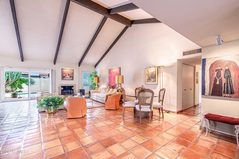 Listing details for 7337 Montebello Ave, Scottsdale, AZ 85250 : Experience the perfect, classic Southwest charm in this stunning 2,242 sq. ft. residence. Situated perfectly within the community, this home offers a peaceful, tucked-away setting where serenity is part of everyday living--well removed from busy roads and the noise of traffic. Featuring 3 spacious bedrooms and 3 bathrooms (the second bedroom even has its own ensuite), this home offers an inviting atmosphere highlighted by soaring vaulted ceilings, authentic Saltillo tile flooring, and a wealth of recent upgrades. The heart of the home is a dramatic open-concept living and dining area, where massive, exposed wood beams draw the eye upward toward abundant natural light. The kitchen is a chef's delight, recently updated in 2024 with a new kitchen sink, faucet, disposal, and refrigerator. It features a unique light-filled ceiling cove, a convenient built-in desk, and plenty of cabinetry for all your storage needs. Recent updates include a roof overhaul, a new heat pump, and fresh professional paint in the master bedroom, master bathroom and second bathroom. Step outside to a secluded desert paradise. The sparkling pool was also a focus of recent upgrades, including a new circulating pump ('23), re-wired electrical ('24), and a new pool sweep ('24). Relax under the shade of rebuilt patio structures or enjoy the uniquely charming grotto off the master bath. Don't miss this opportunity