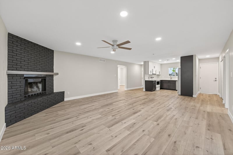 Listing details for 7352 Meadowbrook Ave, Phoenix, AZ 85033 : Move-in ready and beautifully updated with an open floor plan designed for easy living. This home features a cozy fireplace in the living room, a newer A/C, updated windows, flooring, kitchen cabinets, a remodeled primary bathroom, and a newer garage door — the big-ticket items are already done. Located in a great West Phoenix area close to shopping, dining, and entertainment, with easy access to State Farm Stadium and Westgate. Ideal for first-time buyers or those looking for a low-maintenance, turnkey home. Just move in and enjoy.