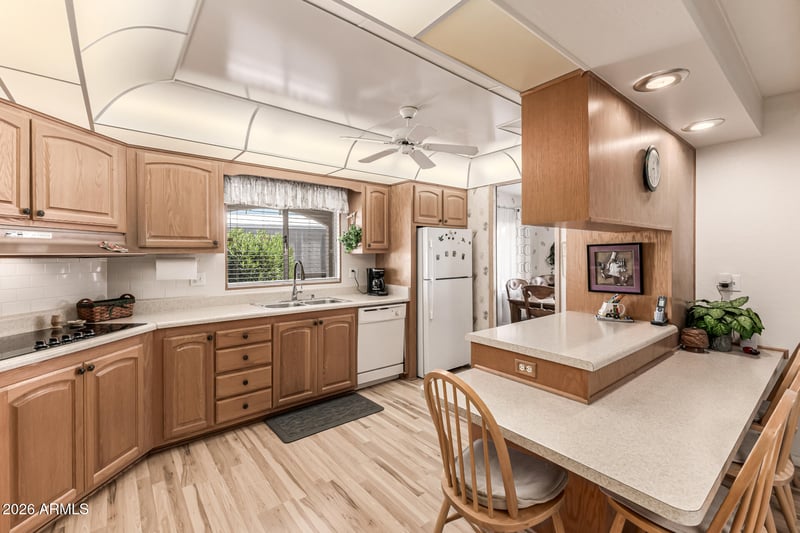 Listing details for 736 82nd Way, Mesa, AZ 85208 : Spacious and lovely Golf Course Home, 2 bedrooms, 2 bathrooms, 2 car garage, workshop, 600 sf tiled Arizona Room, Living Room, Formal Dining Room, Family Room with stone fireplace. One of the largest lots in Fountain of the Sun, with a back patio overlooking the golf course and shady breezeway in the front. If you want space for entertaining, friends and family, this is the one you want to see.