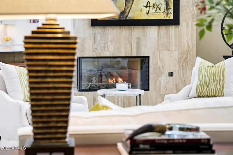 Listing details for 7361 Via Estrella Ave, Scottsdale, AZ 85258 : This stunning, meticulously maintained renovated residence is ideally situated within the highly sought-after Gainey Ranch corridor in the prestigious gated community of Monterey at Mountain View. Designed with both elegance and livability in mind, the open-concept floor plan is an entertainer's dream. The chef's kitchen has been professionally curated with custom cabinetry, Sub Zero and Wolf appliances, wine captain and beverage refrigeration. An impressive 102'' x 60'' Calacatta Amber marble island offers abundant storage, with additional storage in the walk-in pantry, and two discreet appliance garages. A thoughtfully designed split floor plan enhances privacy and relaxation, featuring a luxurious primary suite with a spa-inspired bath. Custom dual sliding doors open to his-and-her walk-in closet. The opposite wing of the home includes three spacious secondary bedrooms, ideal for family or guests. Step outside to a low maintenance lushly landscaped backyard, where a rare all-tile pool anchors the space delivering the ultimate setting for alfresco dining and entertainment.