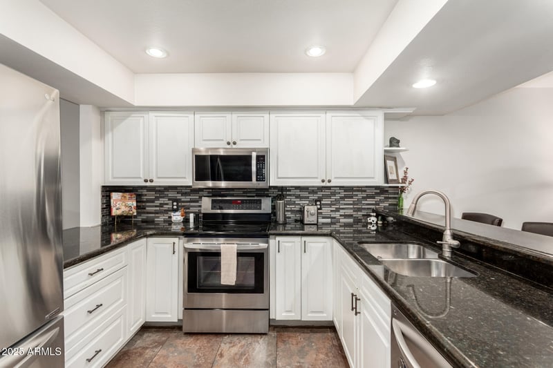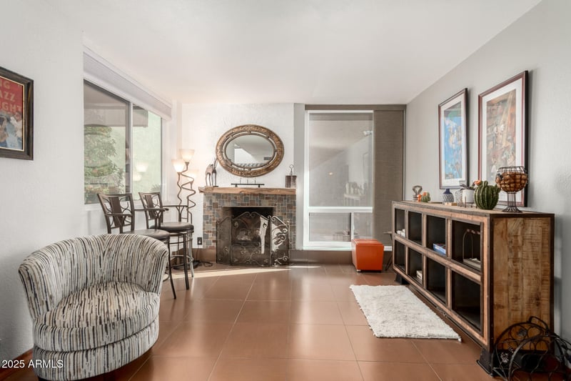Listing details for 7401 Scottsdale Rd #37, Paradise Valley, AZ 85253 : Prepare to be amazed by this absolute beauty & attention to detail this townhome showcases! Meticulously designed interior promotes a modern feel, featuring wood-look tile flooring, neutral paint, & tons of natural light. Large living room enhanced by a cozy fireplace is perfect for chilly evenings. Sliding glass doors in the family room create a seamless indoor-outdoor flow. The eat-kitchen offers stainless steel appliances, ample cabinets, mosaic tile backsplash, recessed lighting, granite counters, & a breakfast bar. Head upstairs to find the sizable primary bedroom w/plush carpet, balcony access, an ensuite w/dual sinks, & a walk-in closet. Don't miss the stacked washer & dryer. Spend quiet mornings on the balcony or unwind under the covered patio. A rare deal like this won't last!