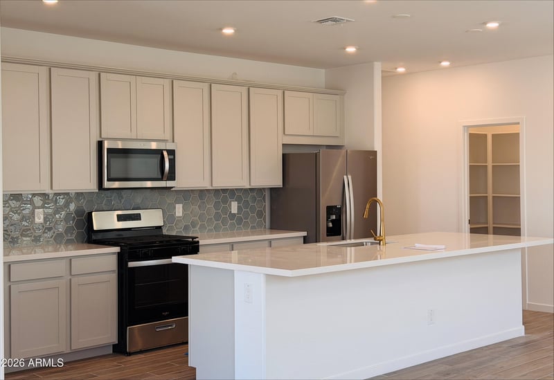 Listing details for 7416 Rose Ln, Glendale, AZ 85303 : Move-in Ready, this beautifully appointed Shiloh floorplan offers 4 bedrooms, 2 bathrooms, and a 2-car garage in the desirable Bethany Grove community. This design features an expansive kitchen island, generous walk-in pantry, and seamless flow ideal for everyday living and entertaining.