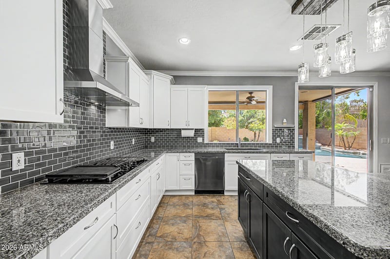 Listing details for 7419 Lariat Ln, Peoria, AZ 85383 : Welcome to this fully remodeled luxury home in North Peoria, This stunning 5 bedroom, 3 bathroom residence showcases high-end designer finishes, a modern open-concept floor plan, and exceptional attention to detail throughout. The gourmet kitchen features quartz countertops, custom cabinetry, premium stainless steel appliances, and an oversized island, seamlessly flowing into expansive living and dining spaces--perfect for entertaining and everyday living. The split floor plan offers privacy and flexibility, ideal for multi-generational living, a home office, or guest suite. The primary suite is a true retreat with a spa-inspired bathroom, dual vanities, walk-in shower, and spacious closet. Step outside to a resort-style backyard with ample space ideal for Arizona living.