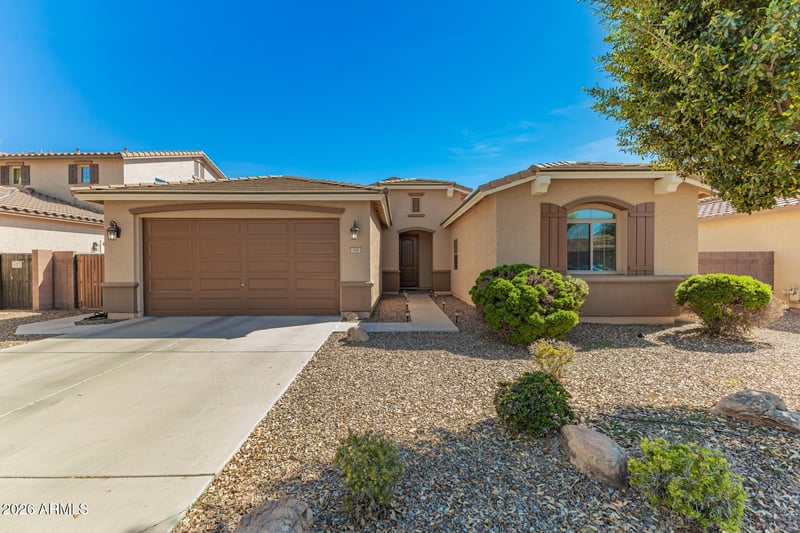 Listing details for 749 Reeves Ave, San Tan Valley, AZ 85140 : Welcome home to this beautiful 4-bedroom, 2-bath residence in Ironwood Crossing! Featuring a 3-car tandem garage, mature landscaping, and a double gate for added convenience, this home has so much to offer. Inside, you'll find abundant natural light, a warm two-tone palette, and tile and wood-look flooring in all the right places. The spacious open-concept layout is perfect for both everyday living and entertaining. The kitchen is a true highlight with built-in appliances, a walk-in pantry, staggered wood cabinetry with 4' crown molding, recessed and pendant lighting, and a two-tier island with breakfast bar seating. The generously sized primary suite offers a private ensuite bath with dual sinks and a walk-in closet. Additional features include a laundry room with utility sink and the home is pre-wired for surround sound in the great room. Step outside to a sizable backyard with a lush lawn and extended covered patio, ideal for relaxing or enjoying a BBQ. Residents of Ironwood Crossing enjoy resort-style amenities including a splash pad, heated pools, pickleball courts, volleyball, and soccer fields--perfect for an active lifestyle. This is one you won't want to miss!