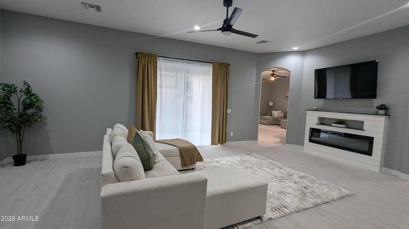 Listing details for 7517 86th Ave, Glendale, AZ 85305 : Furnished Home, Immaculate Reconstructed in 2024, Fully Upgraded, All Furniture included. Come and see this Beautiful Diamond in the heart of Glendale. About 2.7 miles from Cardinal Stadium. and Tanger Outlets, Gorgeous Tiled Bathroom Showers, New Bathroom Vanities with Marble Counter tops, Tiled Floors in the right places, Carpet in the Bedrooms, 2 8x8 Feet Arcadia Doors, Electric Fireplace, Kitchen Cabinets with Granite Counter Tops, Two A/C units. Tiled Roofing, Stainless Steel Kitchen Appliances. This is a Must see. Agents Bring Your Buyers, they will not be disappointed.