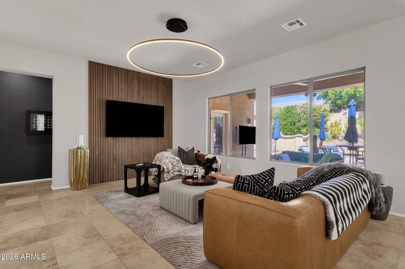 Exterior highlights include a private courtyard entry, extended driveway, and 2-car garage. The backyard is designed for outdoor enjoyment with a covered patio, private pool with water feature spilling over into a grotto, therapeutic hot tub, and low-maintenance desert landscaping with mature trees for added privacy. Owner spent over $15,000 on landscaping. Positioned in a North Scottsdale location with convenient access to outdoor recreation, golf, dining, and retail: 0.8 mi to Pinnacle Peak Park (hiking trails), 1.4 mi to The Summit at Scottsdale (Target, restaurants, retail), 2.0 mi to Grayhawk Golf Club, 2.2 mi to Scottsdale Rd dining and shopping corridor, 3.3 mi to Loop 101 freeway access, 6.4 mi to Kierland Commons, and 6.6 mi to Scottsdale Quarter. Enjoy a seamless blend of comfort, privacy, and location in one of North Scottsdale's most desirable areas!