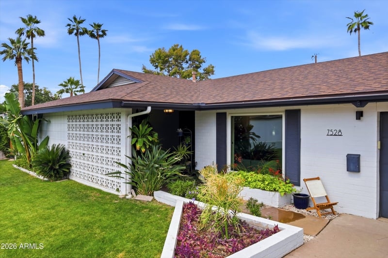 Listing details for 7528 6th Pl, Phoenix, AZ 85020 : Nestled in the heart of North Central Phoenix, this beautifully updated home offers the perfect blend of timeless midcentury character and modern comfort. Ideally located near the Murphy Bridal Path and within the highly sought-after Madison School District, this property sits ''between the 7's'' on a generous, lush lot. From the moment you arrive, classic midcentury modern details--like distinctive breeze block accents--set the tone for a home that's both stylish and inviting. Inside, thoughtful updates elevate every space, including a fully renovated kitchen and a stunning primary bathroom designed with both function and sophistication in mind. An added laundry room enhances everyday convenience. The expansive lot offers rare privacy, with mature trees providing shade and a tranquil, park-like setting. Enjoy green grass year-round with flood irrigation, and room for expansion. A covered patio creates the perfect space for relaxing or entertaining, surrounded by lush landscaping and the quiet charm that defines this coveted neighborhood. This is a rare opportunity to own a move-in-ready home with architectural character, modern upgrades, and room to grow in one of Phoenix's most desirable locations.
