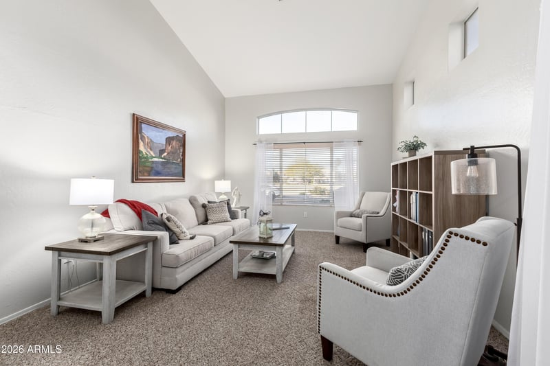 Listing details for 7545 Monte Ave, Mesa, AZ 85209 : What if your next home felt like a private retreat... right in the middle of everything? Tucked inside the highly sought-after Superstition Springs Village, this home delivers something buyers rarely find, true privacy paired with unbeatable convenience. With no homes behind you, the backyard becomes your own secluded escape, complete with a sparkling pool perfect for Arizona afternoons and sunset evenings. Step inside and you're immediately greeted by soaring high ceilings that create an open, light-filled atmosphere. The upgraded kitchen is both stylish and functional, designed for everything from quiet mornings to hosting friends. Beautifully updated bathrooms add a touch of luxury you'll appreciate every day. Out front, a large green park feels like an extension of your own yard.