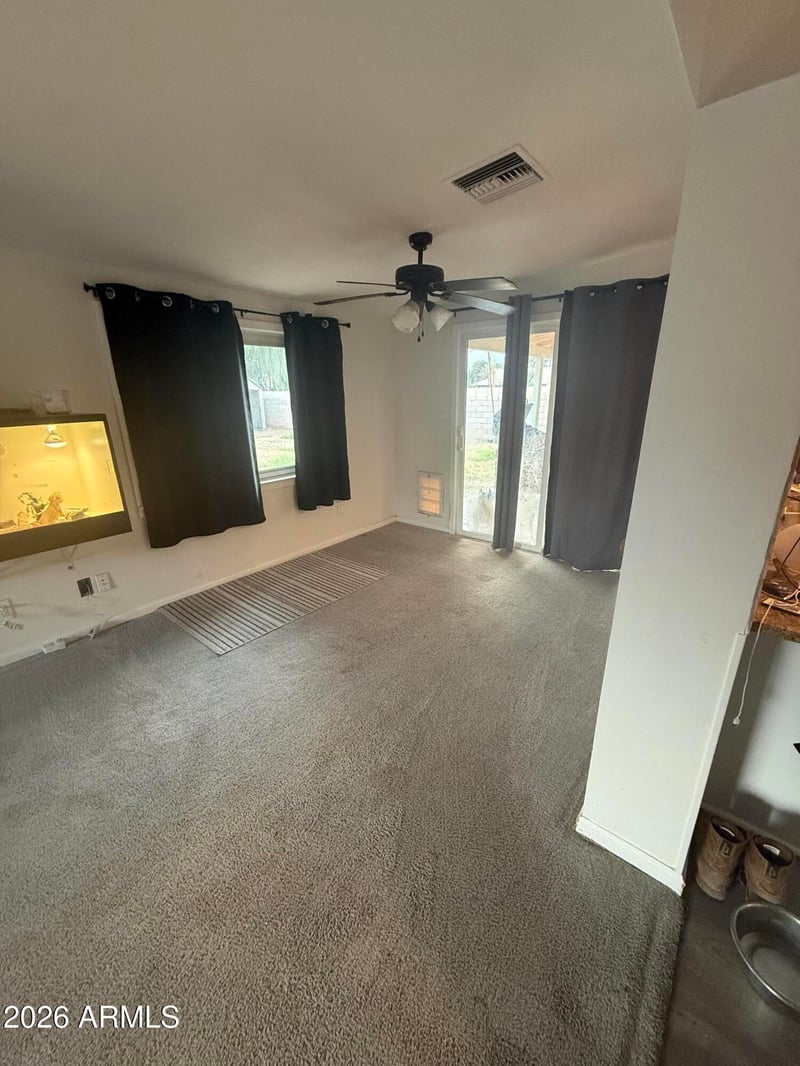 Listing details for 757 Nopal Cir, Mesa, AZ 85210 : 4-bedroom, 2-bath home located on a large cul-de-sac lot with no HOA. Functional floor plan includes a living room, dining area, and family room with wood-burning fireplace. Finished Arizona room opens to the family room and provides additional living space.