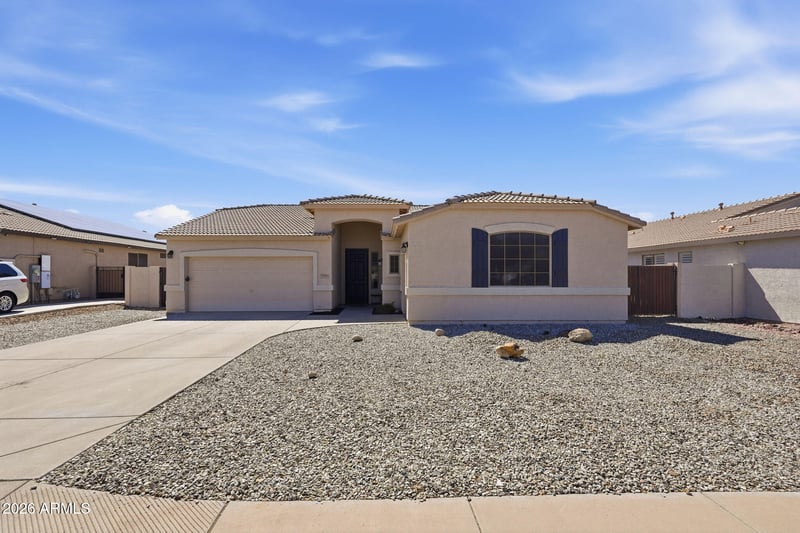 Listing details for 7575 Tierra Buena Ln, Peoria, AZ 85382 : Located in the highly desirable Arrowhead Shadows community, this well-maintained 3-bedroom, 2-bath home offers comfort, convenience, and a backyard built for Arizona living. The spacious floor plan is filled with natural light and features neutral tones throughout, creating the perfect canvas for the next owner's personal touch. The home includes stainless steel appliances, an LG washer and dryer set, and a water softener. Step outside to enjoy the beautiful low-maintenance backyard with a newer pool--ideal for relaxing or entertaining. Additional highlights include an RV gate and a 3-car garage for extra storage and flexibility. Conveniently located near shopping, dining, entertainment, and the Peoria Sports Complex.