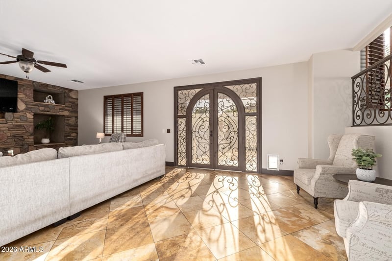 Listing details for 7596 87th Dr, Glendale, AZ 85305 : This impressive 5-bedroom, 4-bath basement home offers over 4,000 square feet of living space on a premium-sized lot with a 3-car garage--a rare find in Rovey Farm Estates. Designed for both comfort and entertaining, the home features a spacious layout with thoughtful upgrades throughout.