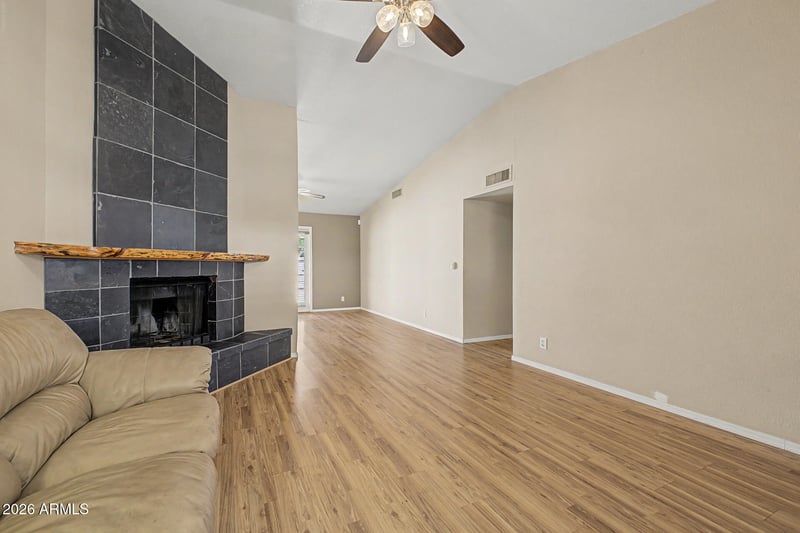Listing details for 763 Alamo --, Mesa, AZ 85204 : You don't want to miss this adorable single-story situated in a prime corner lot with a 2-car garage and RV gates! Inside, you'll find a bright and inviting layout with wood-look floors, vaulted ceilings promoting an airy feel, a tiled fireplace perfect for chilly winter evenings, and a soothing palette that makes every space feel warm and welcoming. Whip up your signature dishes in the well-appointed kitchen, equipped with oak cabinetry, spacious counters, stainless steel appliances, and a pass-through window with a breakfast bar. The main suite hosts a full bathroom and a practical walk-in closet. The backyard boasts a covered patio perfect for morning coffee and weekend grills, a storage shed for added organization, and plenty of space for outdoor fun! No HOA! Make it yours now!