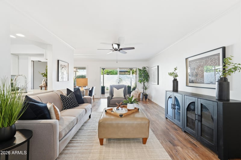 Listing details for 7630 Pasadena Ave, Scottsdale, AZ 85250 : Remodeled 2-bedroom, 2-bath townhome located in the highly sought-after Villa Monterey, a Historic Preservation Community showcasing iconic architecture and exuding charm! This thoughtfully updated residence welcomes you with a beautiful living room featuring wood-look flooring and a neutral, timeless palette that complements any style of furnishings. The galley kitchen offers crisp white cabinetry, stainless steel appliances, and ample prep space—perfect for everyday living and entertaining. Both bedrooms are generously sized and paired with beautifully updated bathrooms featuring modern vanities and finishes. Step outside to your private, low-maintenance landscaped yard, an ideal spot to relax. Heated community pool and spa. Short walk to Old Town Scottsdale, where you can enjoy world-class dining, shopping, galleries, and entertainment. A rare opportunity to own a move-in-ready home in one of Scottsdale's most beloved historic and walkable communities.