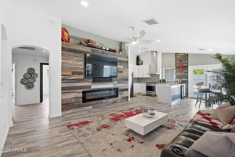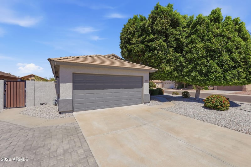 Listing details for 7636 Angels Ln, Peoria, AZ 85383 : Move-in ready home with pool in Peoria's highly sought-after Fletcher Heights! This highly upgraded 3 bedroom, 2 bath + den home features an open great room, vaulted ceilings, and a functional layout. Updated kitchen with granite counters custom cabinetry, and stainless steel appliances. Both bathrooms have been remodeled. Step into a professionally designed backyard built for fun and entertaining--featuring a new Pebble Tec pool, bocce ball court, outdoor chess board, and a large pergola with electricity and mounted TV. New front and back landscaping by Moon Valley Nursery. Located near Loop 101 with quick access to Arrowhead Towne Center, P83 Entertainment District, dining, shopping, and entertainment. Too many upgrades to list them all. You have to see this home!