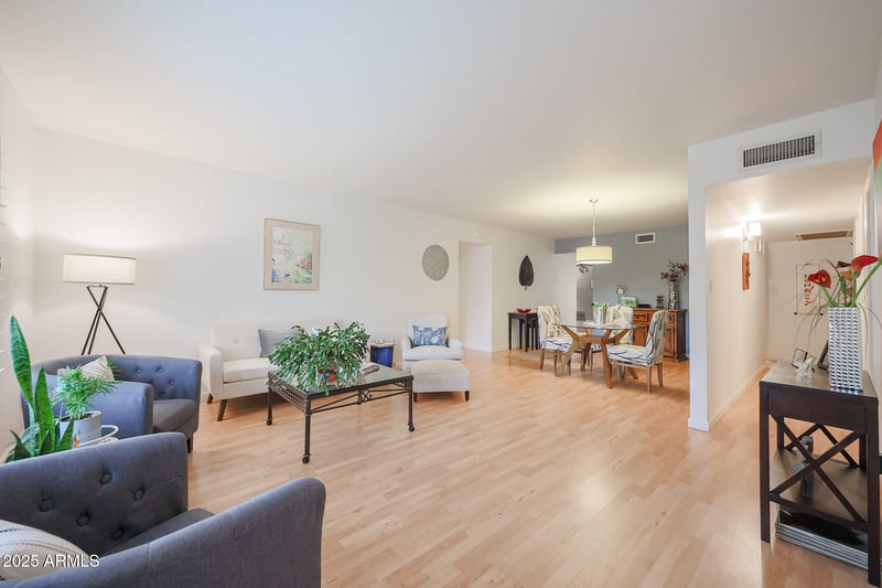 Listing details for 7721 Harvard St, Scottsdale, AZ 85257 : What a location next to Eldorado Park-Coronado golf course-lake-bike/walking path! Come see this 3 bedrom 2 bath Single level townhome updated with white shaker cabinets in kitchen & white quartz countertops, stainless steel appliances, breakfast bar, Newer windows and sliding glass door that exits to a large back patio area/yard thats fully enclosed with a 6 ft block wall for your privacy/enjoyment. Both bathrooms have been updated w/vanites/showers/lighting. 2 living rooms. Hard floors throughout for easy maintenance. 3 Spacious bedrooms for plenty of furniture. Split plan. Keep this for yourself or make it a rental. The community lakes make it unique. Huge community pool was completely rebuilt 2024! Close to Golf, park & more. HOA does front yard work. Great lock & leave. Easy to see The large master bedroom has California Closet system with draer and hamper built in. The master bath has new vanity, quartz countertops, updated tiled shower and glass shower doors. Don't forget the plantation shutters and updated windows!