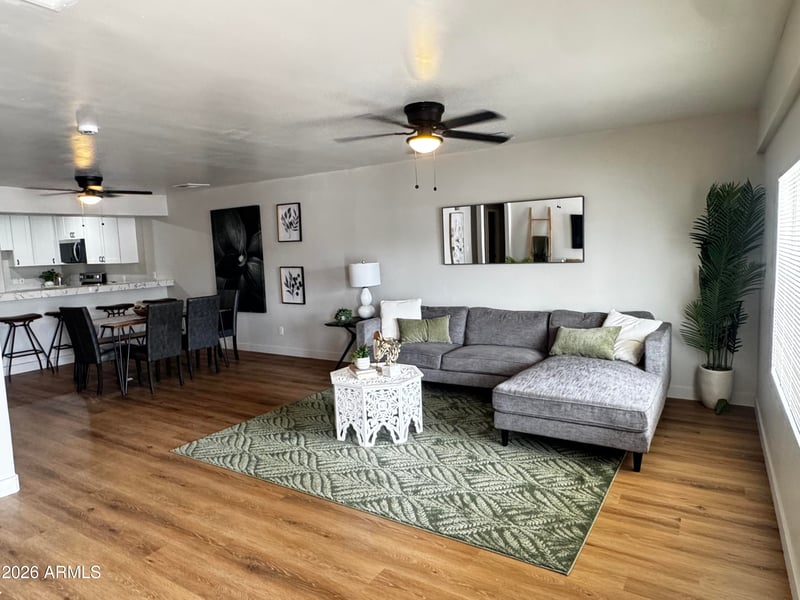 Listing details for 7732 Mitchell Dr, Phoenix, AZ 85033 : Charming 3-bedroom home with open-concept living and 3/4 bath. Features a large backyard and separate parking for the main home and attached casita. Casita includes a 4th bedroom, kitchenette, 3/4 bath, and laundry hookups- ideal for guests or rental income. Conveniently located near freeway access, shopping, and 1/4 mile from Cartwright Elementary
