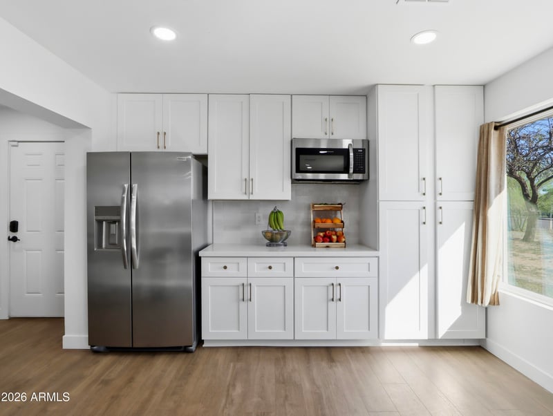 Listing details for 7750 Hermosa Vista Dr, Mesa, AZ 85207 : Beautifully remodeled 3-bedroom, 2-bath home featuring brand-new flooring, updated countertops, and stunning all-white cabinetry with elegant gold hardware. The home has also been upgraded with a new HVAC system and new plumbing, offering comfort and peace of mind for years to come. It also includes a reverse osmosis water filtration system.