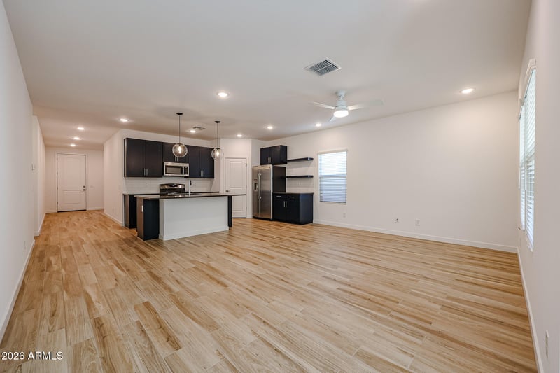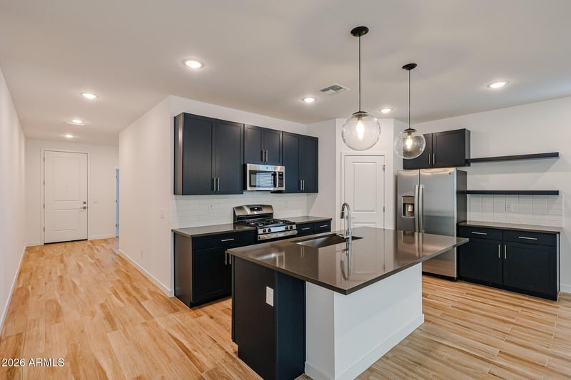 Listing details for 7763 86th Ln, Glendale, AZ 85305 : 4 bedroom, 2 bath open floor plan home in gated community! This home features a split floor plan with a beautiful open kitchen including custom cabinets, granite countertops, custom lighting, gas stove top and stainless steel appliances over looking family room. Very private backyard with artificial turf, pavers and a covered patio.