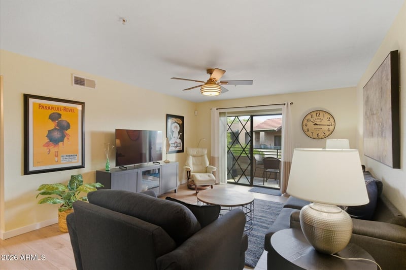 Listing details for 7777 Main St #340, Scottsdale, AZ 85251 : Welcome to this beautifully remodeled (2017) top-level 2-bedroom, 2-bath condo in highly desirable Scottsdale Springs, where location and low-maintenance living come together. This upgraded unit features an open layout, contemporary flooring, designer finishes, and a modern kitchen with granite countertops and stainless appliances. The primary suite offers an updated walk-in shower and stylish tile. Enjoy a private balcony overlooking the lush courtyard. Steps to the Indian Bend Greenbelt and minutes to Giants Spring Training at Scottsdale Stadium, Old Town, and Scottsdale Fashion Square. Gated community with pools, spa, fitness center, and covered parking. Welcome to this beautifully remodeled in 2017, top level 2-bedroom, 2-bath condo in the highly desirable Scottsdale Springs community where location, lifestyle, and low-maintenance living come together effortlessly.