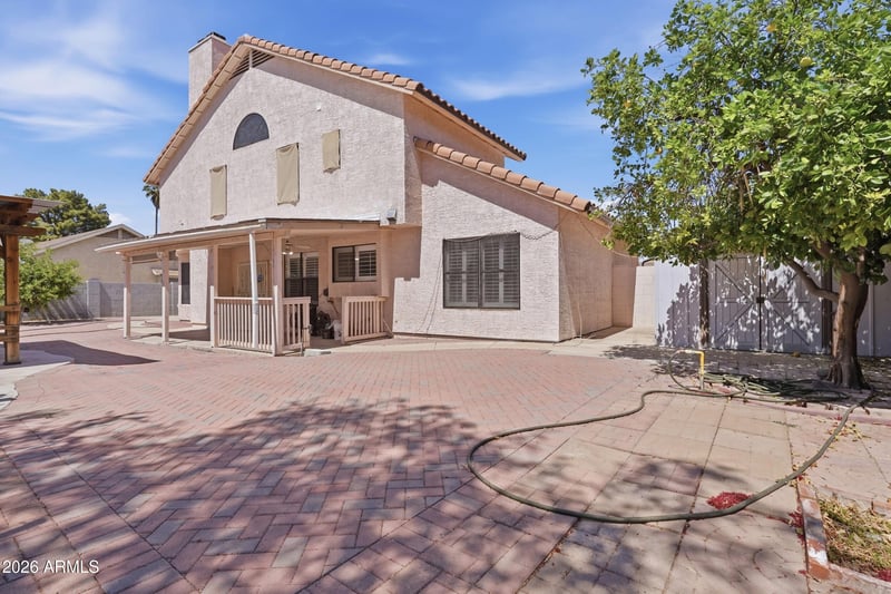 Listing details for 7813 Dreyfus Dr, Peoria, AZ 85381 : NO HOA FEES!! WOW, THIS IS IT!! Prepare to be Amazed as you enter the Grand Foyer and are Immediately Greeted with Gorgeous Tile, Soaring Vaulted Ceilings, Wooden Shutters and an Abundance of Vibrant Natural Light. This well-designed Spacious Living Space Flows into the Inviting Family Room Adorning a Lovely Fireplace and Open BEAUTIFUL Kitchen Featuring an Ample Amount of White Shaker Cabinets, Stainless Steel Appliances, Classy Quartz Countertops and White Subway Tile Backsplash. You won't want to leave the Amazing Primary Suite! Providing Ultra Generous Space, a Cozy Fireplace for those Chilly Nights and Luxurious Ensuite, Highlighting a New Dual Vanity, New Flooring, Deep Soaking Tub, Separate Step-In Shower, 2 Large Walk-In Closets and Perfectly Appointed Skylight. Low Low Maintenance Backyard with Beautiful Herringbone Pavers, Covered Patio, Gazebo, Fruit Trees, Planters and Large Metal Shed, RV Gate and Parking for RV. This Amazing Home Offers Pure Sophistication and is sure to please with so many advantages that make it Stand Out from the Crowd! Recent updates within approximately 5 years, include main house and patio roof, entire house flooring, kitchen cabinets and wooden shutters. The interior of the home was freshly painted! Hurry to see this one before it's gone!